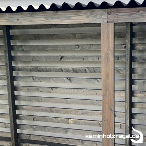 Die Rückwand unserer Kaminholzregale besteht aus gehobelten Fichtenholz-Latten und wird so befestigt dass Luftschlitze zum belüften des Brennholzes zu sehen sind.