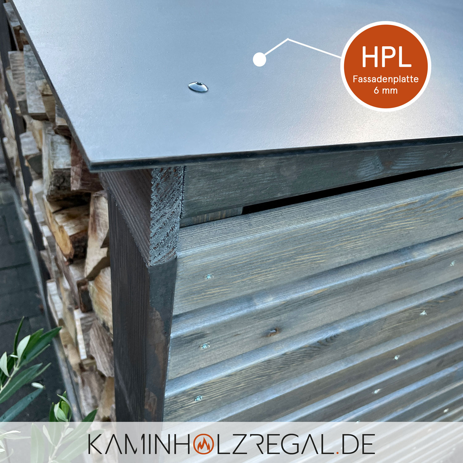 Produktinformationen "Premium Kaminholzregal - Rhombus Seitenverkleidung, HPL Dachplatte und Rückwand - graphitgrau/anthrazit"